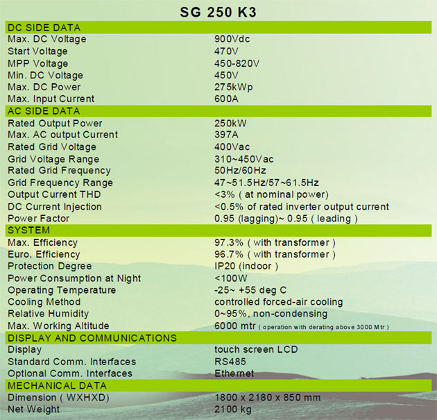 Features:- Power reduction (100%,60%,30%,0%) meeting German EEG requirements